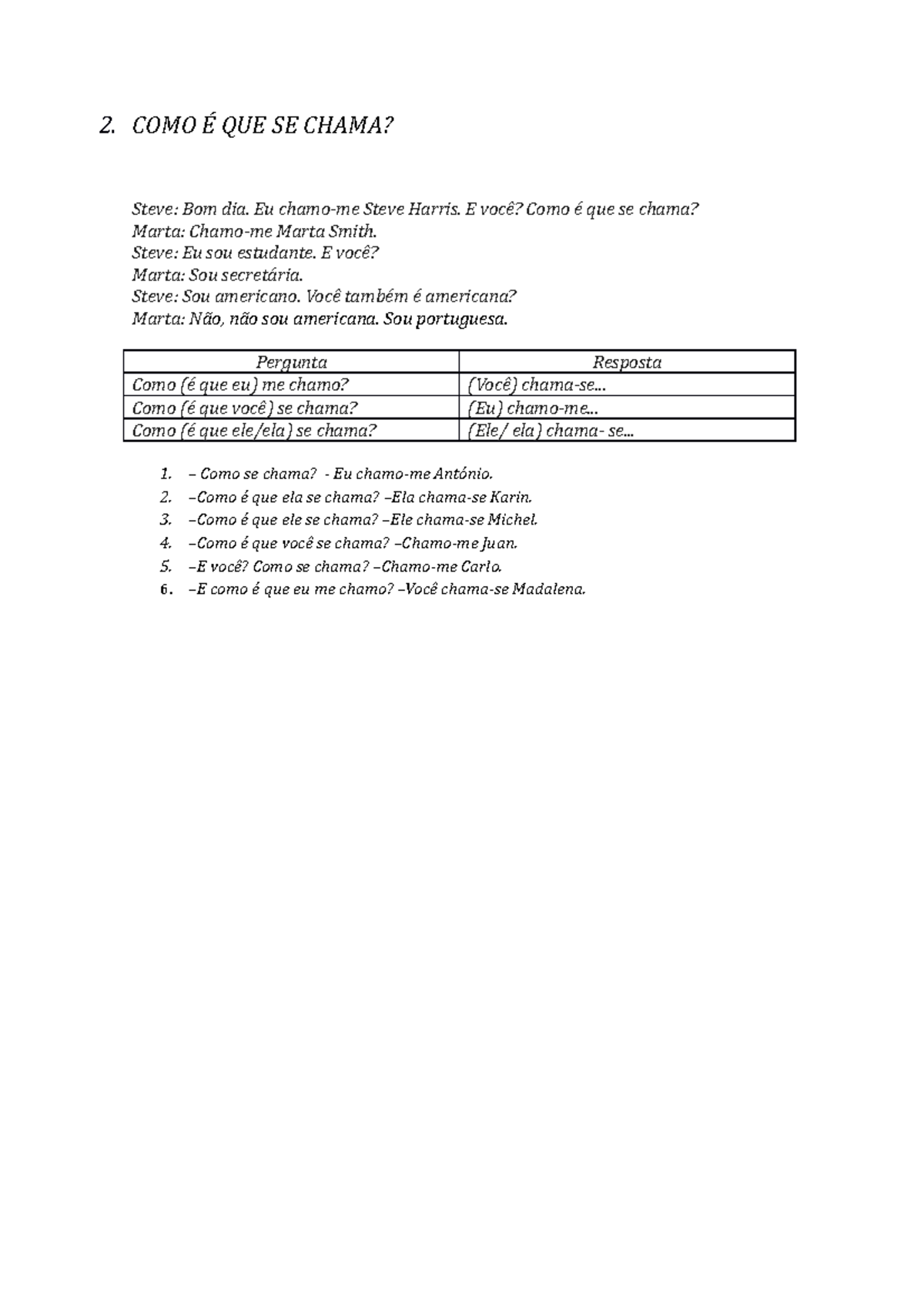 2. Como é que se chama - anaak - 2. COMO É QUE SE CHAMA? Steve: Bom dia