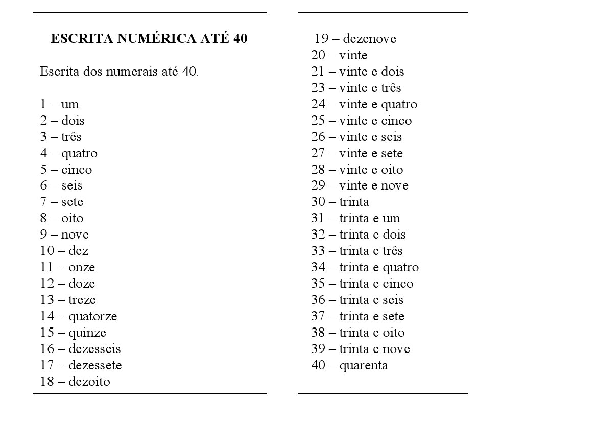 VARAL DE ATIVIDADES: ESCRITA NUMÉRICA ATÉ 40